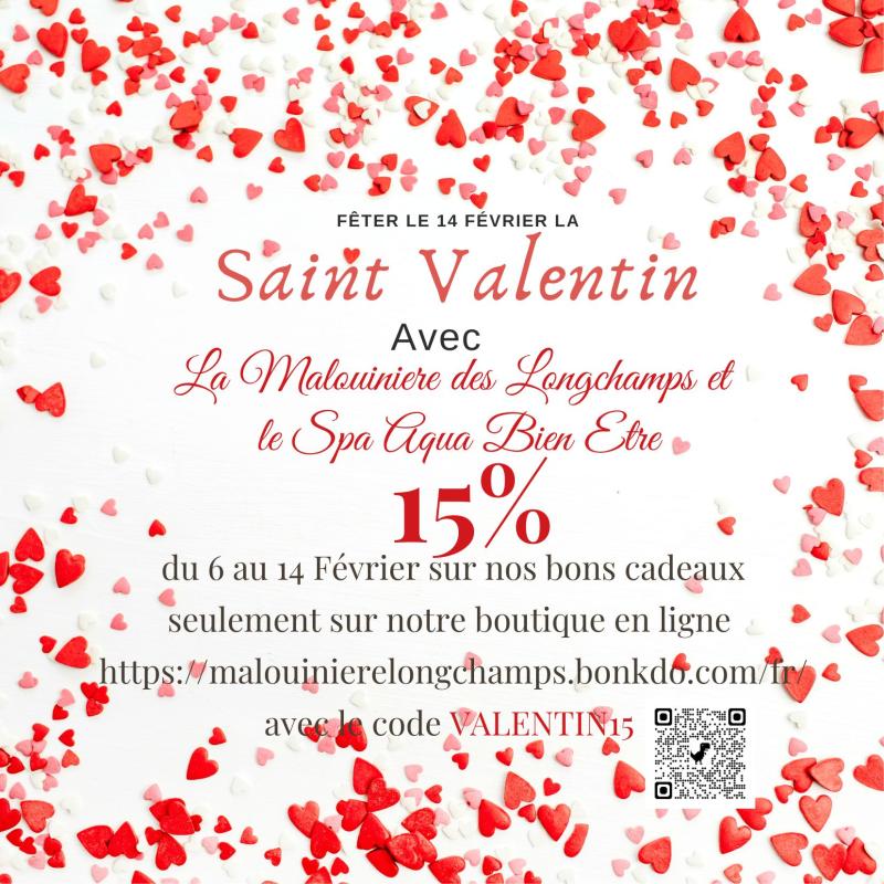 Du 6 au 14 février 2025, profitez de -15% sur tous les bons cadeaux en ligne avec le code VALENTIN15.